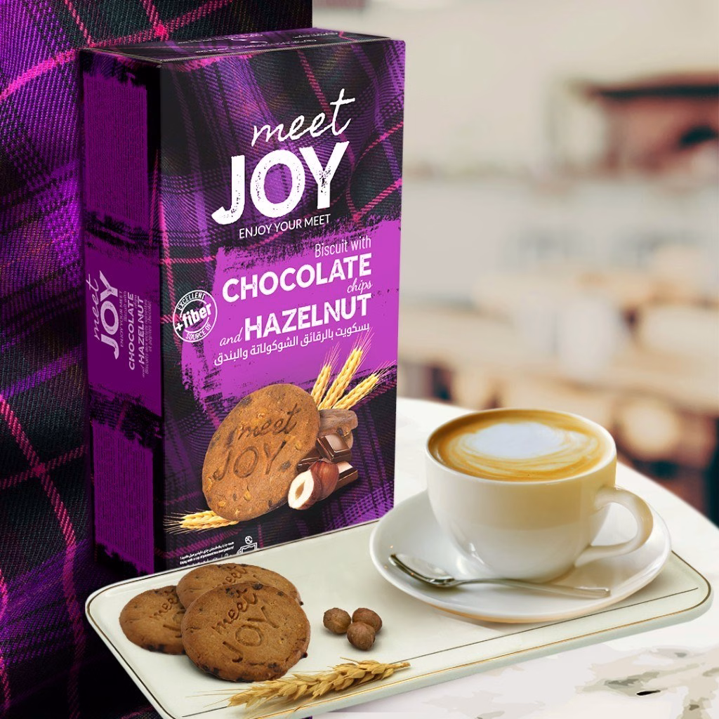 بیسکویت میت جوی با طعم شکلات و فندق (Meet Joy)، محصول جدید برند فرخنده، تجربه‌ای هیجان‌انگیز و خوشمزه از میان‌وعده را برای شما فراهم می‌کند. این بیسکویت با تکه‌های شکلات و مغز فندق، ترکیبی بی‌نظیر از طعم غنی و بافت لذیذ را ارائه می‌دهد که هر لقمه آن حس شیرین و دلنشینی به شما منتقل می‌کند.
