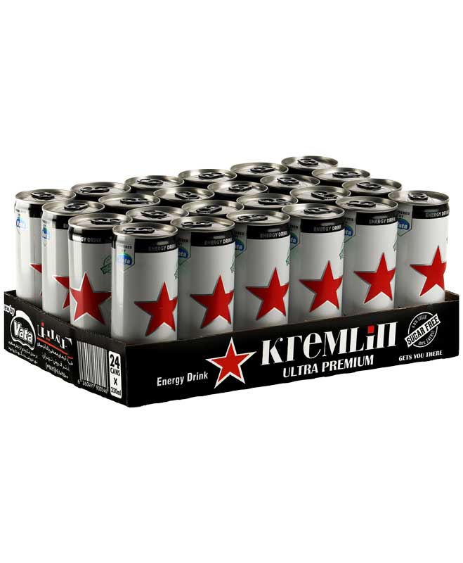 نوشیدنی انرژی زا بدون قند کرملین، سرشار از انواع ویتامین های B2،B3،B5،B6،B12 به همراه کافئین، تائورین است و از شیرین کننده های خوراکی رژیمی به جای شکر استفاده می شود.